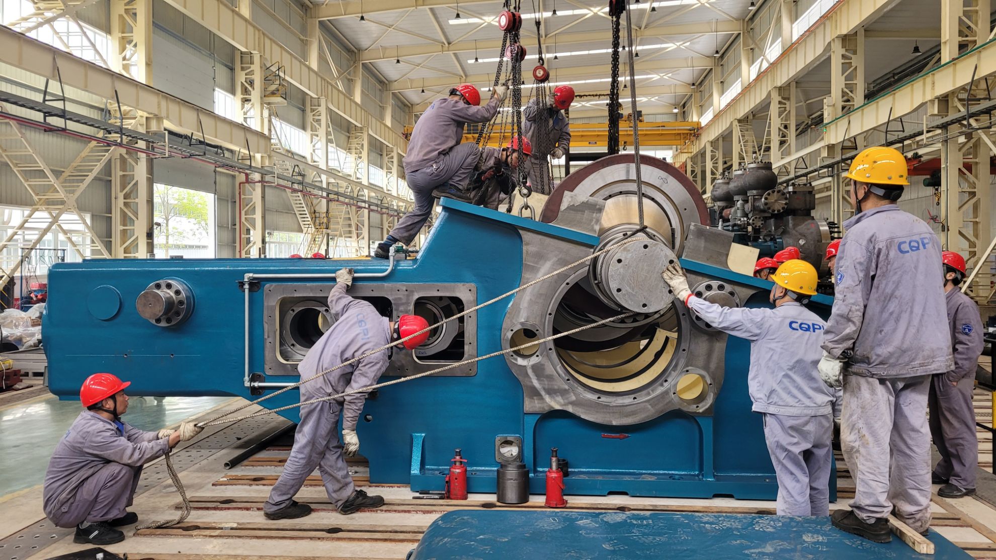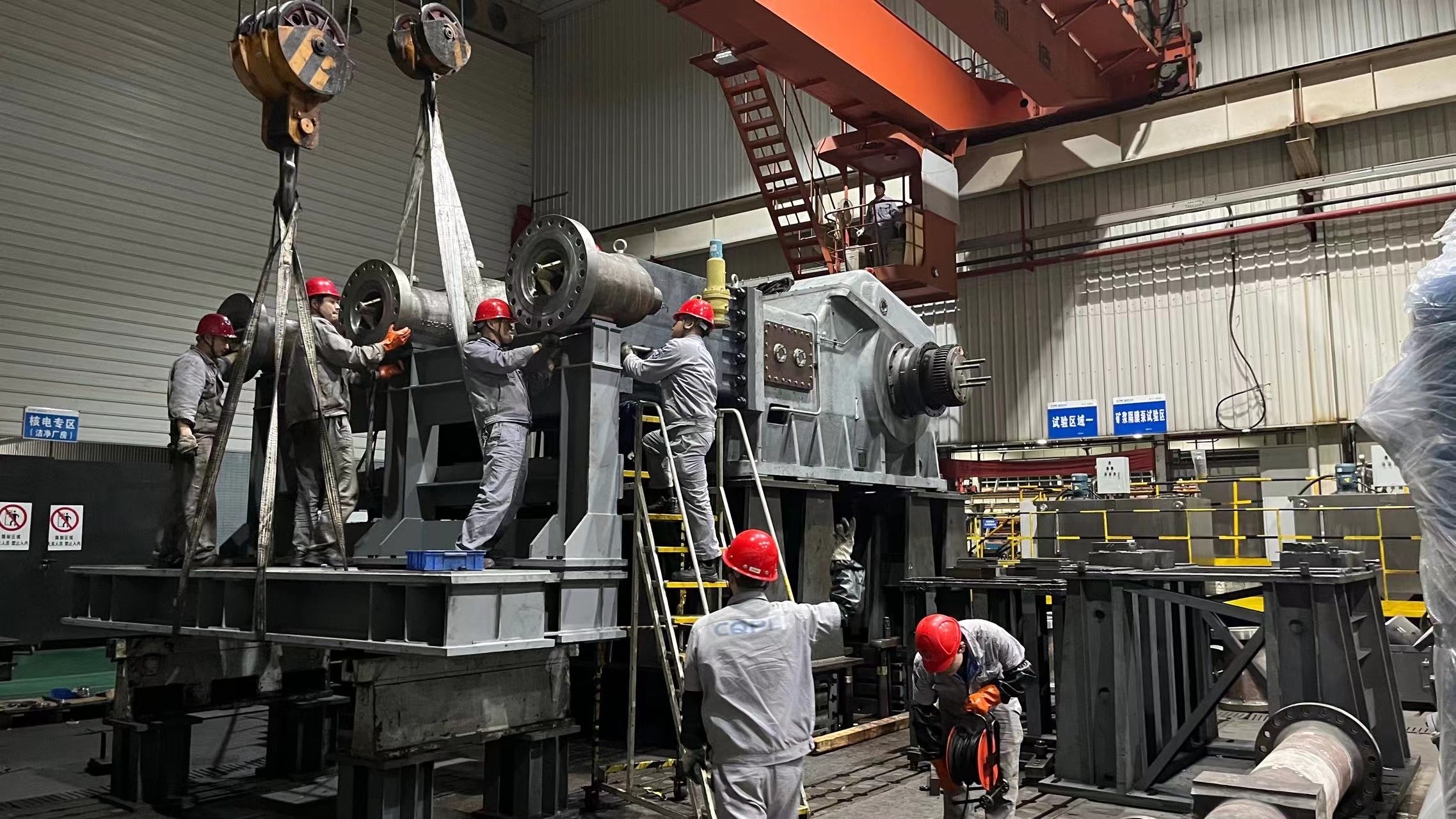 重泵總裝圓滿完成3D13大型礦漿隔膜泵裝配任務