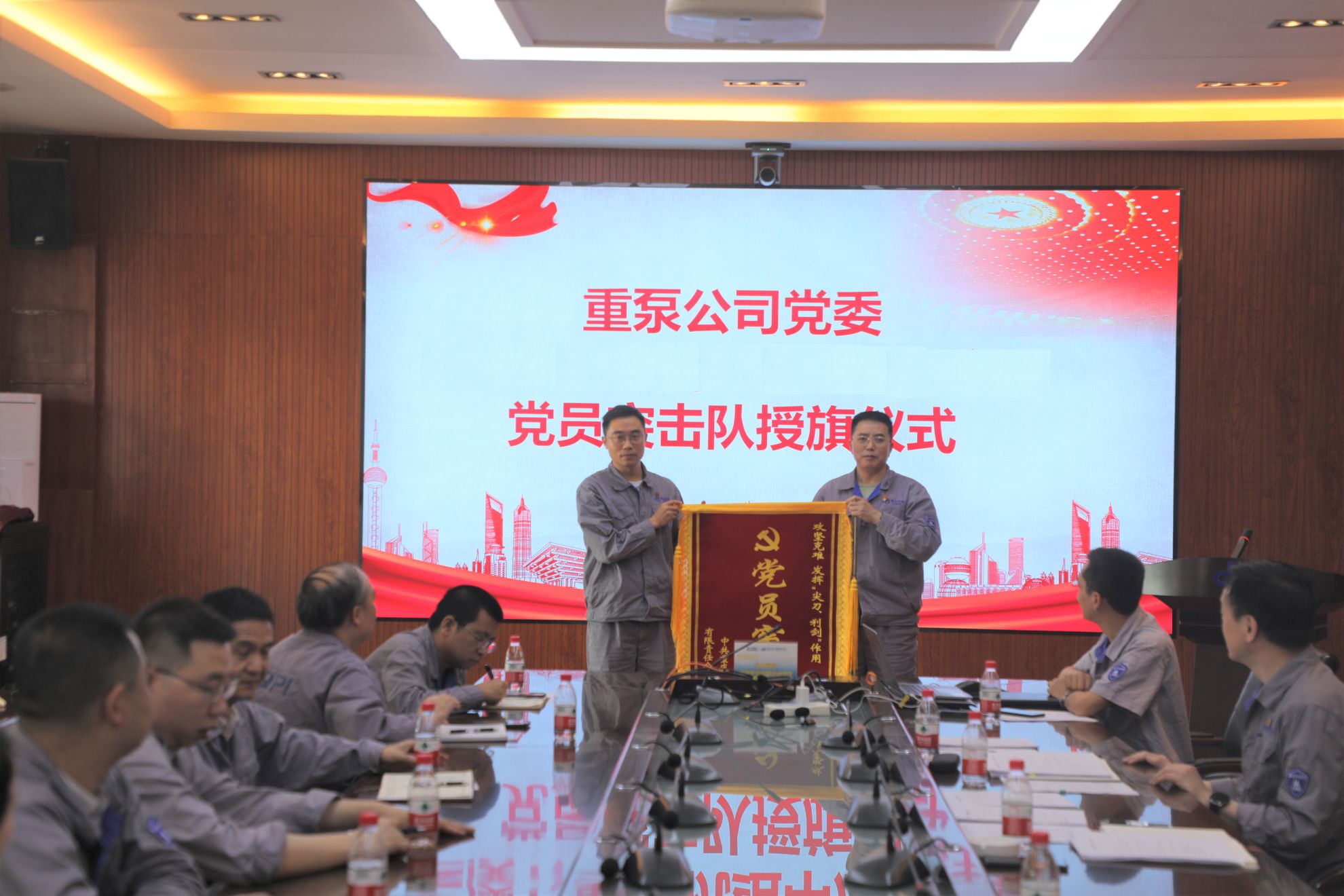 重泵公司黨委對某項(xiàng)目泵組進(jìn)行黨員突擊隊(duì)授旗