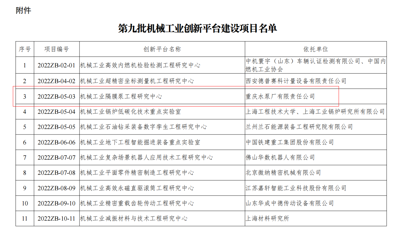 重泵公司再獲批國(guó)家級(jí)創(chuàng)新平臺(tái) ----機(jī)械工業(yè)隔膜泵工程研究中心