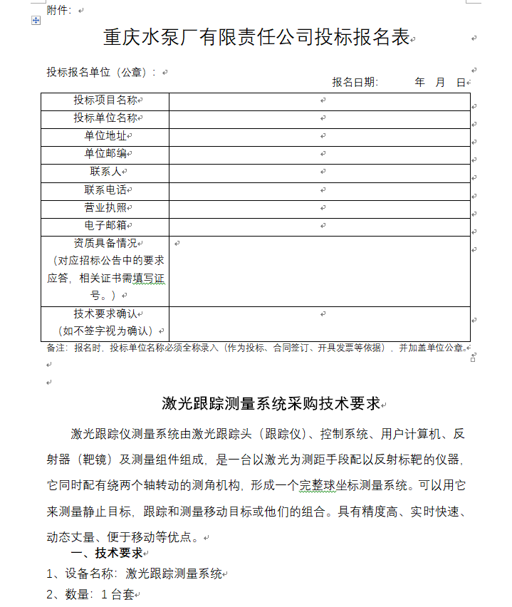 大型往復(fù)隔膜泵研發(fā)測試能力建設(shè)項目 激光跟蹤測量系統(tǒng) 招標公告